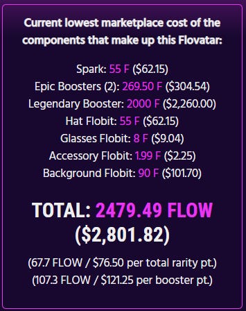 As of November 25, 2022 (subject to change), the valuation estimate was a build-up of the component parts of a Flovatar, based on current floor prices of the components